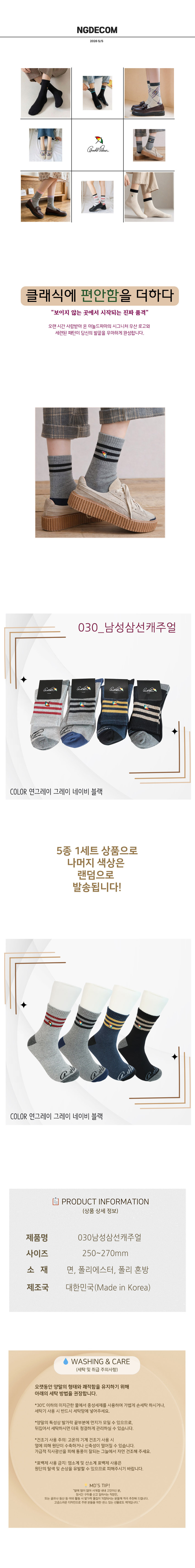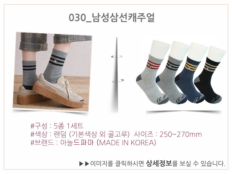 <남궁드컴 5종1세트> 030_남성삼선캐주얼양말/아놀드파마/남성양말/여성양말/신상양말